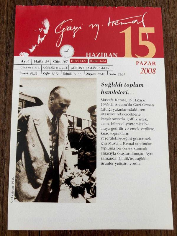 15 HAZİRAN 2008 - TAKVİM YAPRAĞI - DOĞUM GÜNÜ HEDİYESİ - GAZİ MUSTAFA KEMAL ATATÜRK FOTOĞRAFLI BÜYÜKÇEKMECE BELEDİYESİ TAKVİMİ - Sağlıklı toplum hamleleri - Bakırköy Ruh ve Sinir Hastalıkları Hastanesi - 1215- İngiltere Kralı John, Magna Carta sözleşmesini mühürledi - 1826- Sultan II. Mahmud, Yeniçeri Ocağı'nı kaldırdı - 1873- Darüşşafaka kuruldu - 1961- "Dokuzuncu Hariciye Koğuşu"nun yazarı Peyami Safa 62 yaşında öldü - 2000- İngiliz Edebiyatı profesörü Mina Urgan öldü başlıklı ürün, Efemera, Müzik, Sinema > Belge ve Evraklar > Takvimler kategorisi altında İkinci El olarak satılmaktadır.