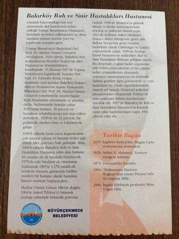 15 HAZİRAN 2008 - TAKVİM YAPRAĞI - DOĞUM GÜNÜ HEDİYESİ - GAZİ MUSTAFA KEMAL ATATÜRK FOTOĞRAFLI BÜYÜKÇEKMECE BELEDİYESİ TAKVİMİ - Sağlıklı toplum hamleleri - Bakırköy Ruh ve Sinir Hastalıkları Hastanesi - 1215- İngiltere Kralı John, Magna Carta sözleşmesini mühürledi - 1826- Sultan II. Mahmud, Yeniçeri Ocağı'nı kaldırdı - 1873- Darüşşafaka kuruldu - 1961- "Dokuzuncu Hariciye Koğuşu"nun yazarı Peyami Safa 62 yaşında öldü - 2000- İngiliz Edebiyatı profesörü Mina Urgan öldü, en son 9 ay önce güncellenmiştir.