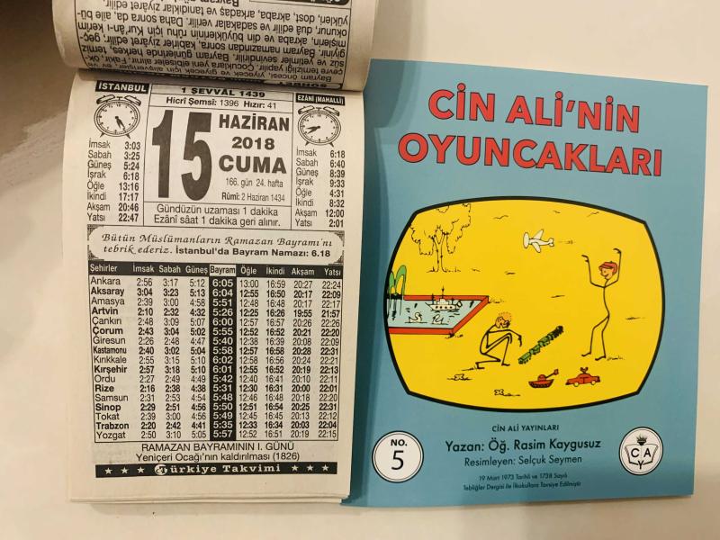 15 Haziran 2018 hediyelik orijinal Türkiye takvim yaprağı (Cin Ali kitabı hediyeli:) başlıklı ürün, Efemera, Müzik, Sinema > Belge ve Evraklar > Takvimler kategorisi altında İkinci El olarak satılmaktadır.