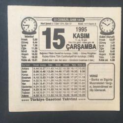 15 KASIM 1995 -TAKVİM YAPRAĞI-DOĞUM GÜNÜ HEDİYESİ-TÜRKİYE GAZETESİ TAKVİMİ,BAĞIMSIZ FİLİSTİN DEVLETİNİN KURULUŞU,1988,GÜNEY RÜZGARLARI,KKTC NİN KURULUŞU 1983, başlıklı ürün, Efemera, Müzik, Sinema > Belge ve Evraklar > Takvimler kategorisi altında İkinci El olarak satılmaktadır.