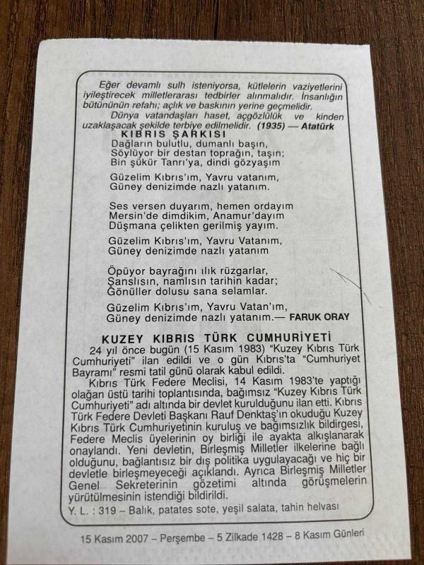 15 KASIM 2007 - TAKVİM YAPRAĞI - DOĞUM GÜNÜ HEDİYESİ - BÜYÜK SAATLİ MAARİF TAKVİMİ - ATATÜRK - FARUK ORAY - KUZEY KIBRIS TÜRK CUMHURİYETİ, en son 8 ay önce güncellenmiştir.