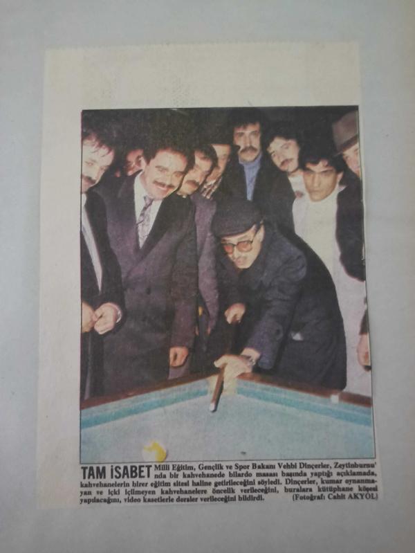 15 Mart 1984 - Milli Eğitim, Gençlik ve Spor Bakanı Vehbi Dinçerler, Zeytinburnu'nda bir kahvehanede masası başında yaptığı açıklamada, kahvehanelerin birer eğitim sitesi haline getirileceğini söyledi - Gazete haberi - Tek Yaprak Arkalı Önlüdür adlı eser, Kitap > Süreli Yayınlar > Dergiler > Spor kategorisinde İkinci El olarak satıştadır.