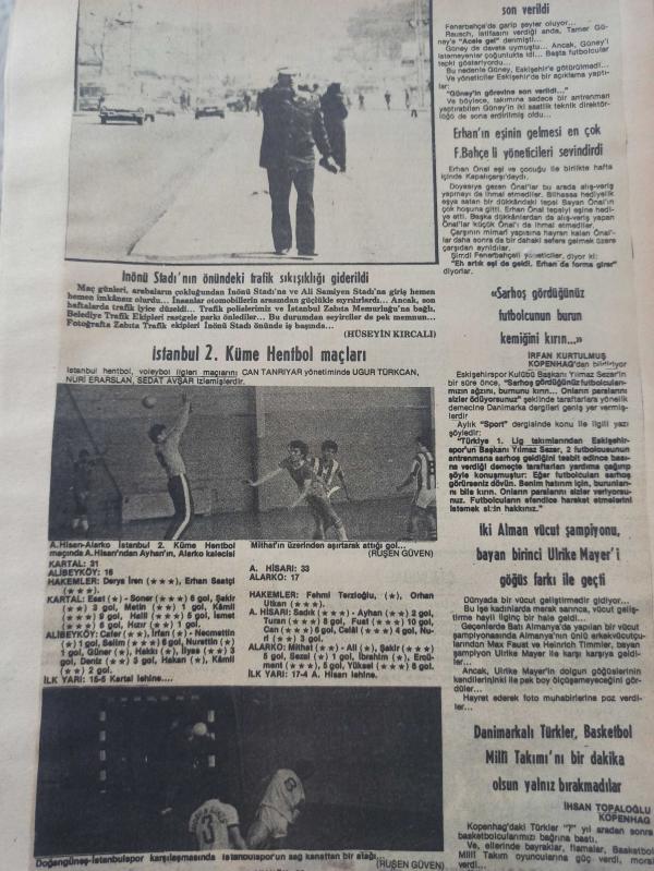 15 Nisan 1982 - İnönü Stadı'nın önündeki trafik sıkışıklığı giderildi - Tamer Güney'in görevine son verildi - İki Alman vücut şampiyonu bayan birinci Ulrike Mayer'i göğüs farkı ile geçti fotoğraf ve haberi - Gazete haberi - Tek Yaprak Arkalı Önlüdür adlı eser, Kitap > Süreli Yayınlar > Dergiler > Spor kategorisinde İkinci El olarak satıştadır.