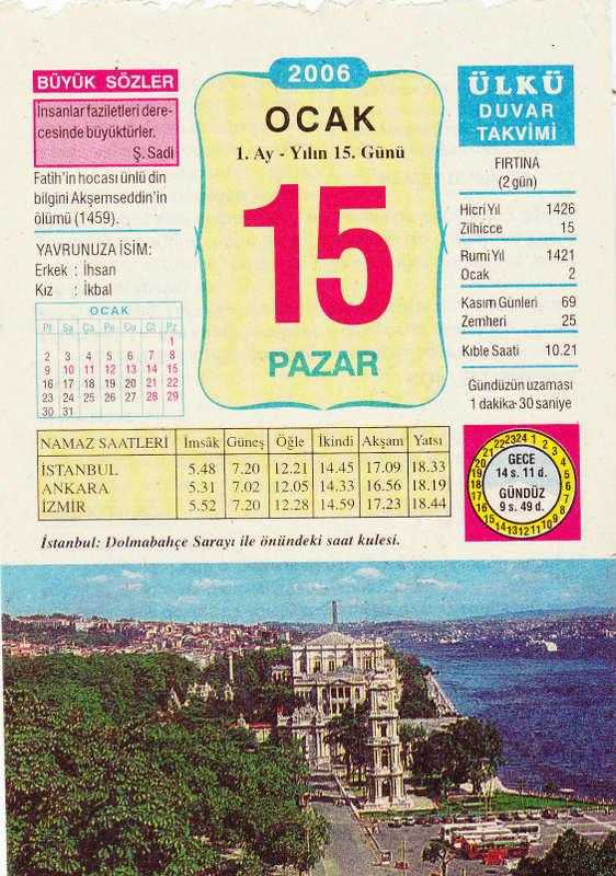 15 OCAK 2006 TAKVİM YAPRAĞI, 4 yıl önce satışa sunulmuştur.