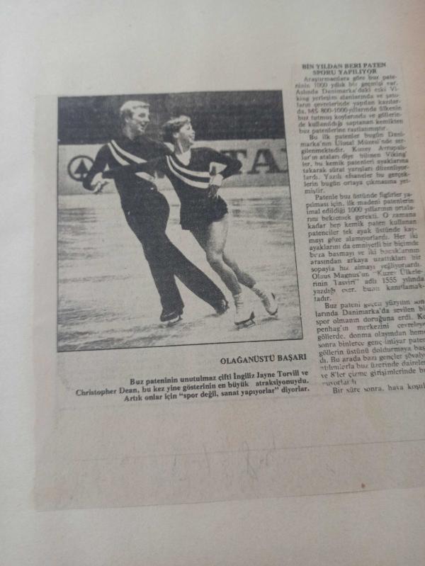 15 Ocak 1984 - Bin Yıldan Beri Paten Sporu Yapılıyor - Buz pateninin unutulmaz çifti İngiliz Jayne Torvill ve Christopher Dean, bu kez yine gösterinin en büyük atraksiyonuydu Gazete Haberi - Tek Yaprak Arkalı Önlüdür adlı eser, Kitap > Süreli Yayınlar > Dergiler > Spor kategorisinde İkinci El olarak satıştadır.
