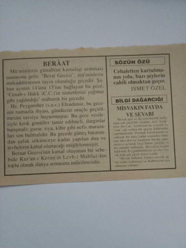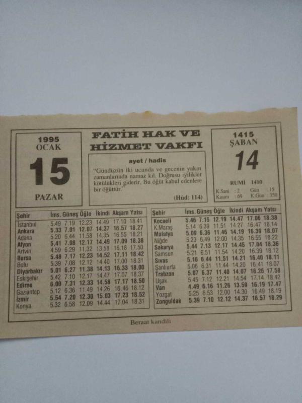 15 Ocak 1995-Orijinal Takvim Yaprağı-Doğum Günü-Söz,Nişan,Nikâh,Düğün ve Önemli Günler Hediyesi-Fatih Hak ve Hizmet Vakfı-Ayet/Hadis(Hûd:114)-Berâat-İsmet Özel-Misvakın Fayda ve Sevabı, en son 3 ay önce güncellenmiştir.