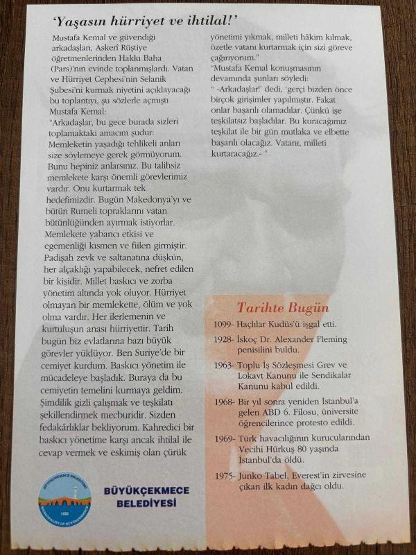 15 TEMMUZ 2008 - TAKVİM YAPRAĞI - DOĞUM GÜNÜ HEDİYESİ - GAZİ MUSTAFA KEMAL ATATÜRK FOTOĞRAFLI BÜYÜKÇEKMECE BELEDİYESİ TAKVİMİ -'Sizi vatan için göreve çağırıyorum!' -'Yaşasın hürriyet ve ihtilal!' - 1099- Haçlılar Kudüs'ü işgal etti. - 1928- İskoç Dr. Alexander Fleming penisilini buldu. - 1975- Junko Tabel, Everest'in zirvesine çıkan ilk kadın dağcı oldu. -1969- Türk havacılığının kurucularından Vecihi Hürkuş 80 yaşında öldü, en son 9 ay önce güncellenmiştir.