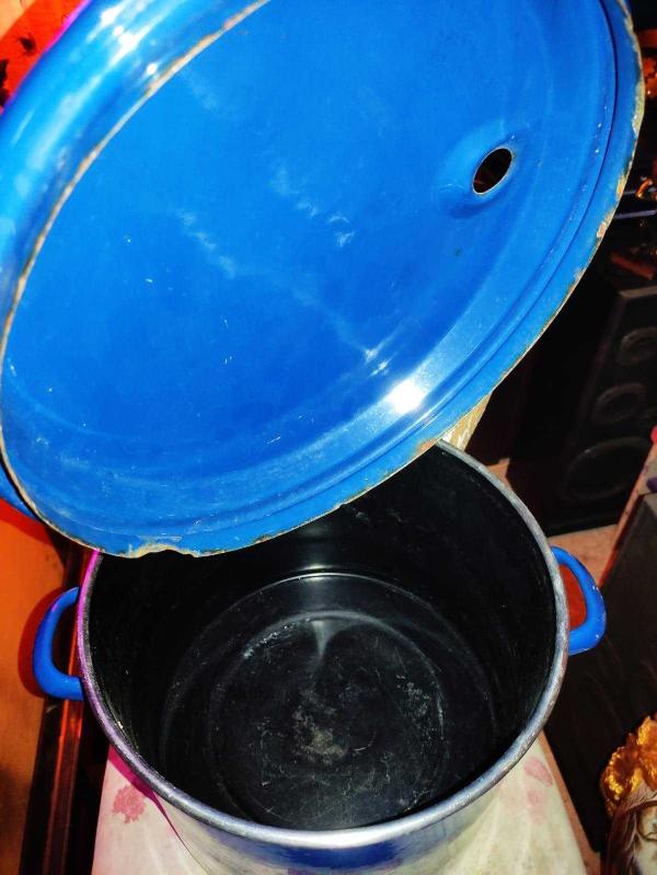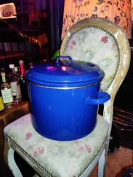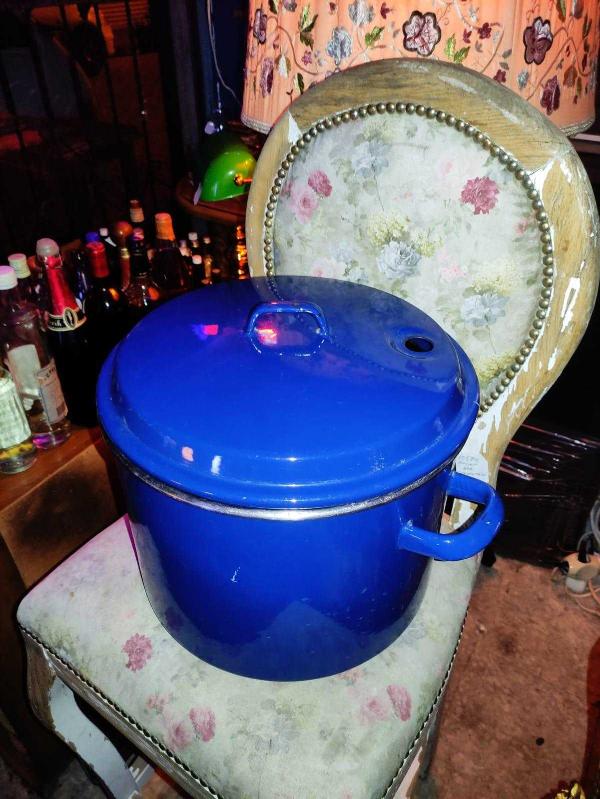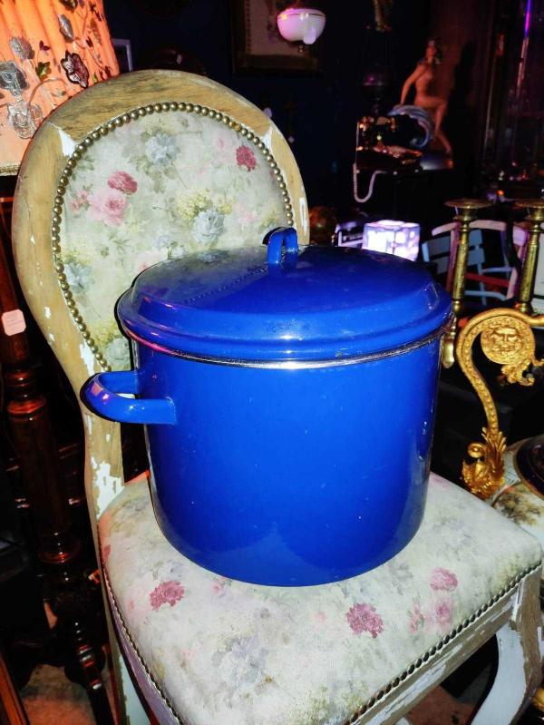 15635-MUHTEŞEM GÜZELLİKDE MAVİ RENK EMAYE KAZAN başlıklı antika/koleksiyon objesi Türkiye menşe’lidir. 1980-1999 arası dönemine aittir.