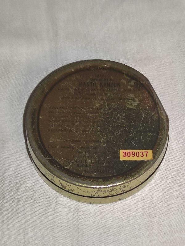 15820-KANZUK PASTİL MÜSEKKİN,ANTİSEPTİN TENEKE KUTU başlıklı antika/koleksiyon objesi Avrupa menşe’lidir. 2000 ve sonrası dönemine aittir.