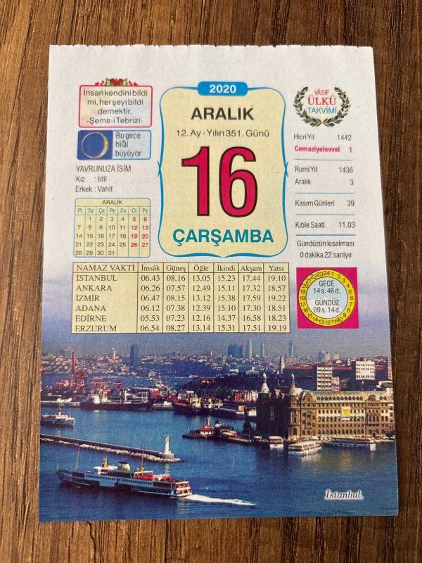 16 ARALIK 2020 - TAKVİM YAPRAĞI - DOĞUM GÜNÜ HEDİYESİ - BÜYÜK SAATLİ MAARİF TAKVİMİ -İSTANBUL- 1729 - Osmanlı'da, "Kitab-ı Lûgat-ı Vankulu" adlı ilk matbu Türkçe eser, İbrahim Müteferrika'nın matbaasında basıldı - 1925 - Milletler Cemiyeti, daha önce saptanan "Brüksel Hattı"nı, Türk-Irak sınırı olarak kabul etti - 1998 - Amerika, Irak'a "Çöl Tilkisi" harekatını başlattı - ÇAD GÖLÜ - HALLAÇ - DANA KAVURMA, 5 ay önce satışa sunulmuştur.