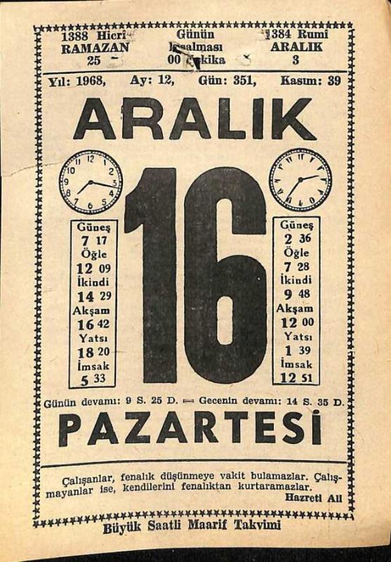 16 Aralık 1968 Takvim Yaprağı - Doğum Günü Hediyesi EFM(N)11060, en son 22 gün önce güncellenmiştir.