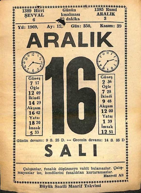 16 Aralık 1969 Takvim Yaprağı - Doğum Günü Hediyesi EFM(N)11376, en son 22 gün önce güncellenmiştir.