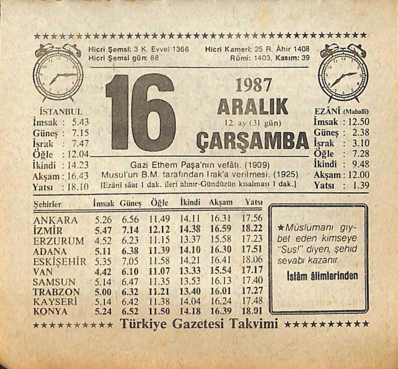 16 Aralık 1987 Takvim Yaprağı - Doğum Günü Hediyesi EFMN14995, en son 20 gün önce güncellenmiştir.