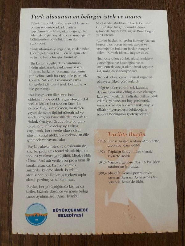 Orijinal takvim yaprağıdır.