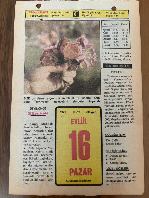 16 EYLÜL 1979 - TAKVİM YAPRAĞI - DOĞUM GÜNÜ HEDİYESİ - HÜRRİYET TAKVİMİ - PİS BİR İŞ ROMANI - İzmir'in ilçesi Çeşme'nin "Kurtuluş Günü" - Fatih Rüştü Zorlu ve Hasan Polatkan'ın idamları (1961), en son 8 ay önce güncellenmiştir.