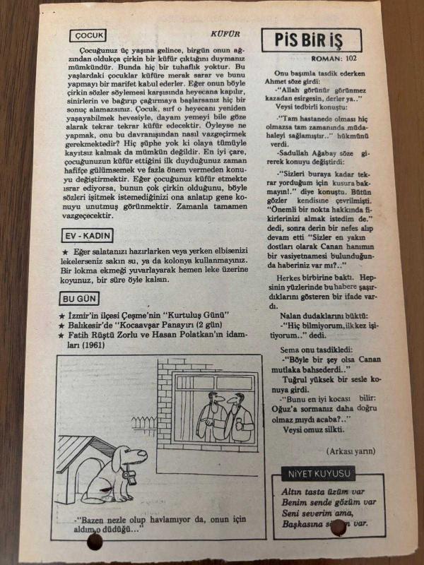 Orijinal takvim yaprağıdır.