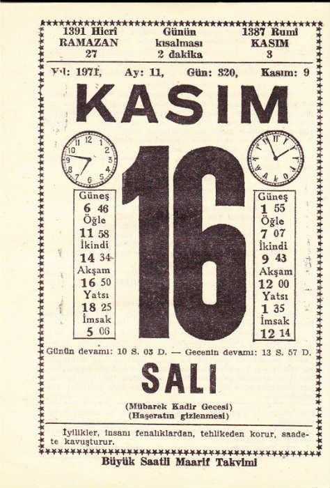16 KASIM 1971 SAATLİ MAARİF TAKVİMİ YAPRAĞI, en son 1 yıl önce güncellenmiştir.