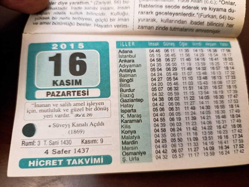 16 KASIM 2015 TAKVİM YAPRAĞI, en son 1 yıl önce güncellenmiştir.