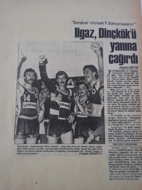 16 Mart 1984 - ''Beraber olursak Fenerbahçe kazanır'' - Faruk Ilgaz, Dinçkök'ü yanına çağırdı - Fenerbahçe, deplasmanda Güney Sanayi'yi yenip play-off'ta yarı finalist olunca, gözler Efes Pilsen maçına çevrildi - Gazete haberi - Tek Yaprak Arkalı Önlüdür, Erol Duru tarafından kaleme alınmıştır. Kitap 1984 yılında yayınlanmıştır. 2 sayfadır. 16 Mart 1984 - ''Beraber olursak Fenerbahçe kazanır'' - Faruk Ilgaz, Dinçkök'ü yanına çağırdı - Fenerbahçe, deplasmanda Güney Sanayi'yi yenip play-off'ta yarı finalist olunca, gözler Efes Pilsen maçına çevrildi - Gazete haberi - Tek Yaprak Arkalı Önlüdür adlı eser Türkçe dilindedir.