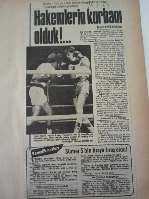 16 Mart 1984 - Burhan Koç ve Fahri Sümer ringde kazandılar, masa başında kaybettiler - Hakemlerin kurbanı olduk!... - Eski boksörlerimizden Hikmet Coşkunoğlu, uzun zamandır Almanya'da yaşıyordu - Gazete haberi - Tek Yaprak Arkalı Önlüdür