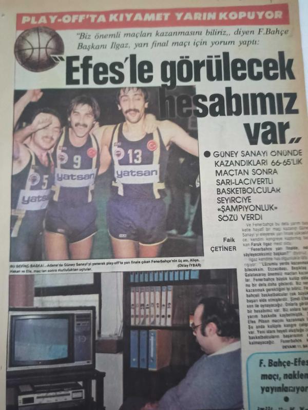 16 Mart 1984 - Play-Off'ta kıyamet yarın kopuyor - ''Biz önemli maçları kazanmasını biliriz'' diyen Fenerbahçe Başkanı Faruk Ilgaz, yarı final maçı için yorum yaptı ''Efes'le görülecek hesabımız var'' dedi - Gazete haberi - Tek Yaprak Arkalı Önlüdür adlı eser, Kitap > Süreli Yayınlar > Dergiler > Spor kategorisinde İkinci El olarak satıştadır.