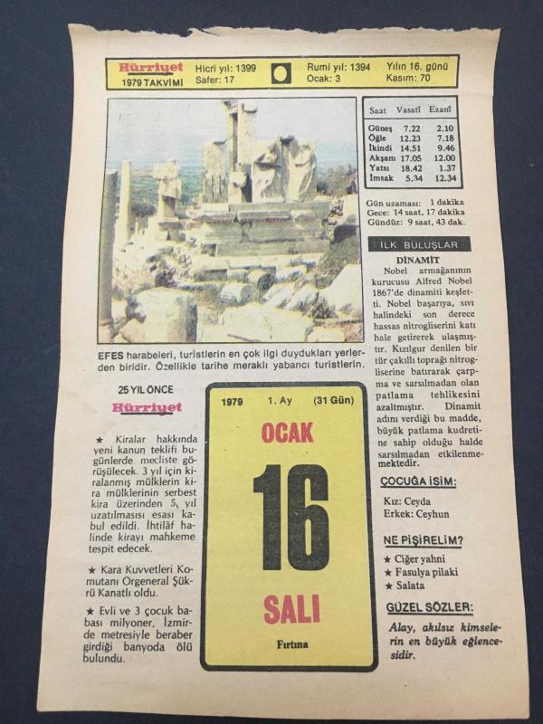 16 OCAK 1979 -TAKVİM YAPRAĞI-DOĞUM GÜNÜ HEDİYESİ-HÜRRİYET TAKVİMİ,ÇOCUĞA İSİM,SPOR DÜNYASI VEDİİ TOSUNCUK,TRAK YOLCU VAPURUNUN MARMARADA BATIŞI 24 KİŞİ NİN ÖLÜŞÜ 1944,İSTANBUL YÜKSEK TİCARET OKULUNUN AÇILIŞI,1883,3.MURATIN ÖLÜMÜ 1595, en son 8 ay önce güncellenmiştir.