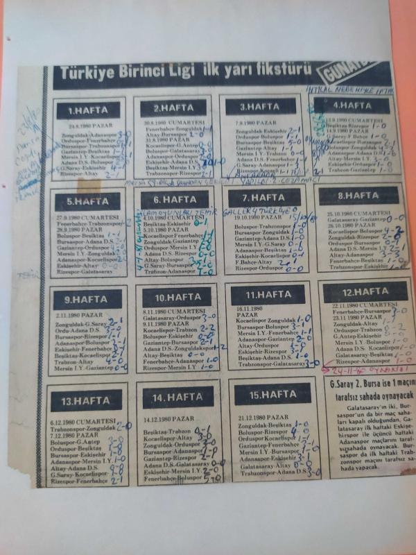 16 Ocak 1981 - Türkiye Birinci Ligi 15 Haftalık İlk Yarı Fikstürü - Galatasaray 2 , Bursa ise 1 maçını tarafsız sahada oynayacak - fotoğraf ve haberi - Gazete haberi - Tek Yaprak Arkalı Önlüdür adlı eser, Kitap > Süreli Yayınlar > Gazeteler > Türkiye > Genel > Günlük kategorisinde İkinci El olarak satıştadır.
