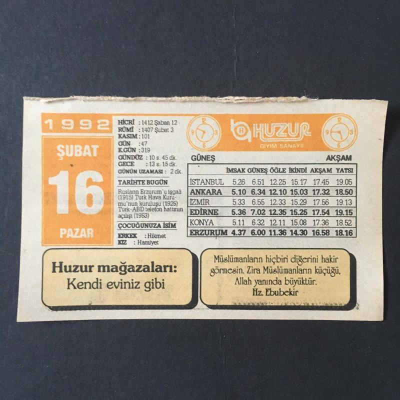16 ŞUBAT 1992 -TAKVİM YAPRAĞI-DOĞUM GÜNÜ HEDİYESİ-HUZUR TAKVİMİ,RUSLARIN ERZURUMU İŞGALİ 1915,TÜRK HAVA KURUMUNUN KURULUŞU 1925,TÜRK ABD TELEFON HATTININ AÇILIŞI 1953,ÇOCUĞUNUZA İSİM,FENALIĞADA İYİLİK,DİŞLERİ BEYAZLATMAK İÇİN, en son 8 ay önce güncellenmiştir.