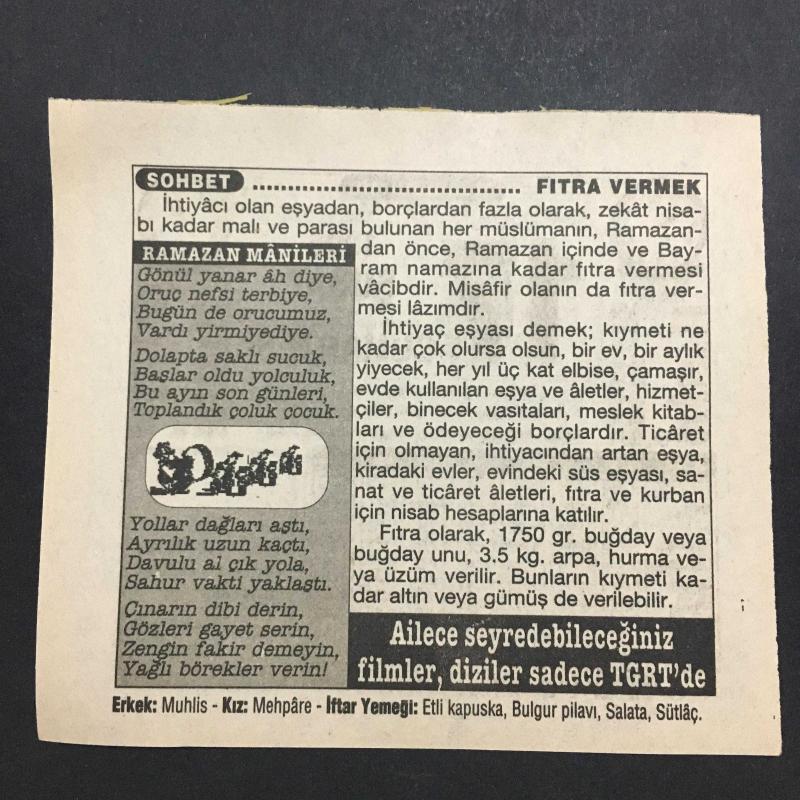 16 ŞUBAT 1996 -TAKVİM YAPRAĞI-DOĞUM GÜNÜ HEDİYESİ-TÜRKİYE GAZETESİ TAKVİMİ,NAYLON ABD DE İLK DEFA ÜRETİLMEYE BAŞLANDI 1937,TÜRK HAVA KURUMUNUN KURULUŞU 1925,FITRA VERMEK RAMAZAN MANİLERİ başlıklı ürün, Efemera, Müzik, Sinema > Belge ve Evraklar > Takvimler kategorisi altında İkinci El olarak satılmaktadır.