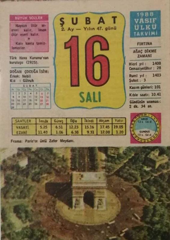 16 Şubat 1988 Takvim Yaprağı - Doğum Günü Hediyesi EFM(N)7713, en son 17 gün önce güncellenmiştir.
