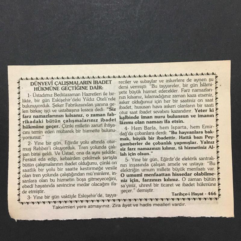 Kitapsız hayat kör,sağır,dilsiz yaşatmaktır.Kitap,zekayı kibarlaştırır.Kitaplar beni ortaya çıkardı.Milletlerin aklı,kitapla gelişir ve büyür.Kimler fazla okuyorsa,az okuyanlara hükmeder.Okumadan geçen bir gün,kaybedilmiş bir gündür.Söz uçar,yazı kalır.Yazı ile saptanmayan her şey,kaybolmuş demektir.Alem unutmuş,kalem (kitap) unutmamış.Bir kitabın içinde birçok ülkeler gezebilirsiniz.En iyi kitapları önceden okuyunuz,çünkü hepsini okuma fırsatını bulamayabilirsiniz.Bizde kitap baş üstünde taşınacak kadar makbuldur.Yazılı kağıdın üzerine basılmaz bile.”Hacı hacıyı Mekke’de,derviş dervişi tekkede bulur,demişler.Alim de alimi bizim çarşıda bulur.”Pirimiz Arslan Kaynardağ’dır,Nizamettin Aktuç’tur,Raif Yelkenci’dir.Gutemberg (1400-1468) matbaayı buldu.