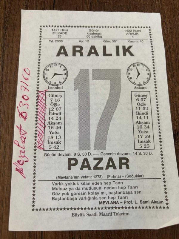 Orijinal takvim yaprağıdır.