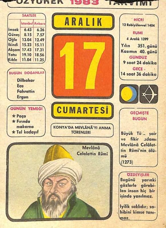 17 Aralık 1983 Takvim Yaprağı - Doğum Günü Hediyesi EFM(N)11516, en son 20 gün önce güncellenmiştir.