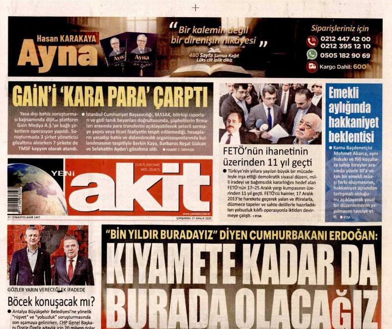 17 Aralık 2025 YENİ AKİT GAZETESİ Doğum Günü Gazetesi (17.12.2025) Doğumgünü Hediyesi | Sıradışı Hediye | Özel Gün Hediyeleri | GAZETE ARŞİVİ, en son 2 saat önce güncellenmiştir.