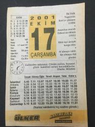 17 EKİM 2001-TAKVİM YAPRAĞI-DOĞUM GÜNÜ HEDİYESİ-ÜLKER TAKVİMİ,İLK TÜRK TUGAYININ KOREYE ÇIKMASI 1950,EDİSONUN ÖLÜMÜ 1931,İBRAHİM ÇALLI 1882-1960, en son 8 ay önce güncellenmiştir.