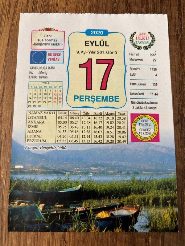 17 EYLÜL 2020 - TAKVİM YAPRAĞI - DOĞUM GÜNÜ HEDİYESİ - BÜYÜK SAATLİ MAARİF TAKVİMİ - Konya, Beyşehir Gölü - SATIKADIN MÜZESİ - OLİMPİYATLAR EVİNDE - AQUINOLU THOMAS - 1922 - Bandırma (Balıkesir) Yunan işgalinden kurtuldu - 1990- Adnan Menderes, Hasan Polatkan ve Fatin Rüştü Zorlu'nun cenazeleri İstanbul Topkapı'da yaptırılan anıtmezara defnedildi, en son 8 ay önce güncellenmiştir.