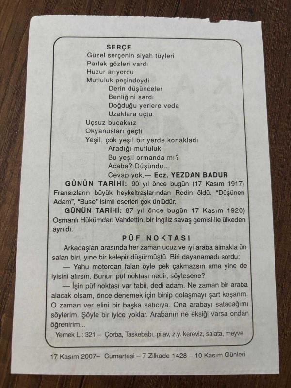 Orijinal takvim yaprağıdır.