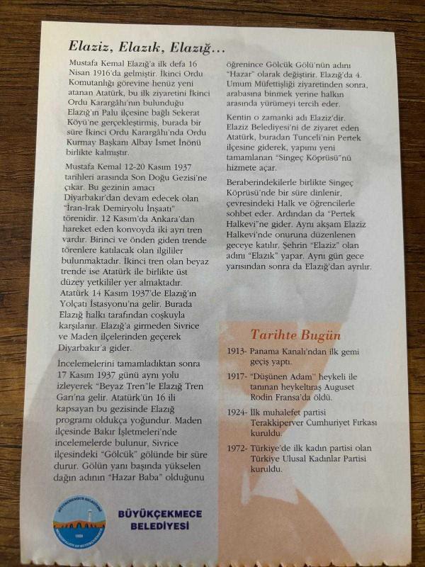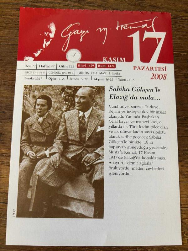 17 KASIM 2008 - TAKVİM YAPRAĞI - DOĞUM GÜNÜ HEDİYESİ - GAZİ MUSTAFA KEMAL ATATÜRK FOTOĞRAFLI BÜYÜKÇEKMECE BELEDİYESİ TAKVİMİ - Sabiha Gökçen'le Elazığ'da mola - Elaziz, Elazık, Elazığ - 1913- Panama Kanalı'ndan ilk gemi geçiş yaptı - 1924- İlk muhalefet partisi Terakkiperver Cumhuriyet Fırkası kuruldu - 1972- Türkiye'de ilk kadın partisi olan Türkiye Ulusal Kadınlar Partisi kuruldu başlıklı ürün, Efemera, Müzik, Sinema > Belge ve Evraklar > Takvimler kategorisi altında İkinci El olarak satılmaktadır.