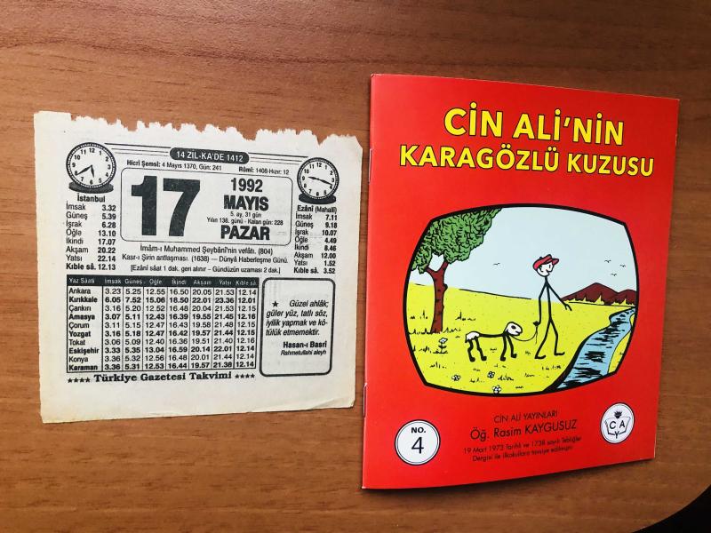17 Mayıs 1992 orijinal Türkiye gazetesi takvim yaprağı (Cin Ali kitabı hediyeli:) başlıklı ürün, Efemera, Müzik, Sinema > Belge ve Evraklar > Takvimler kategorisi altında İkinci El olarak satılmaktadır.