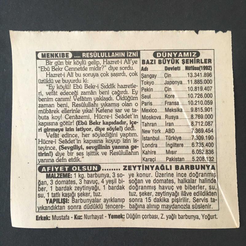 Gazeteler,dergiler,kitaplar harika hediyelerdir.Otantik,orijinal,nadir ve eski gazeteler,dergiler,kitaplar,efemeralar,objeler.Gazeteler bir aynadır.Kitaplar sadece okumak için değil birlikte yaşamak içindir . Kelimeler , notalar ,  sayılar kardeştirler.Kitaplar insanı binbir gözlü yapar.