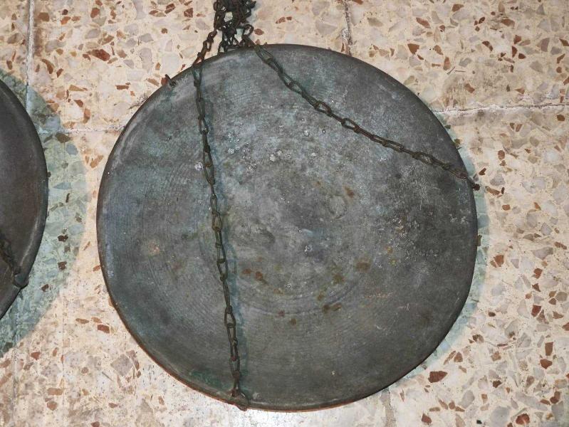 17129-ANTİKA ESKİLERDEN METAL BÜYÜK BOY KEFELİ TERAZİ***ÖLÇEK KISMI PİRİNÇTİR*** kefe çapları 31 cm dir