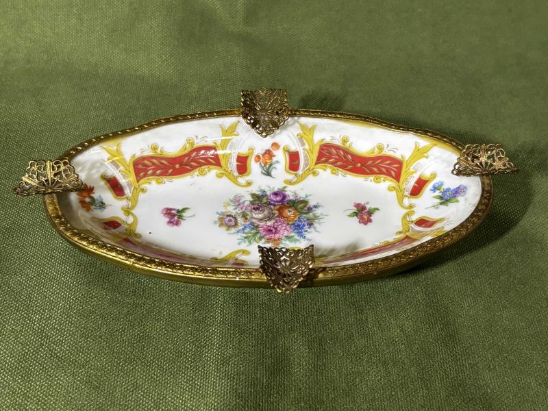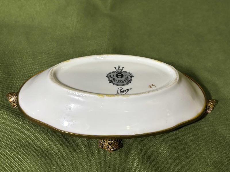 18,5 cm 11 cm ölçülerinde limoges pirinç geçmeli porselen küllük
