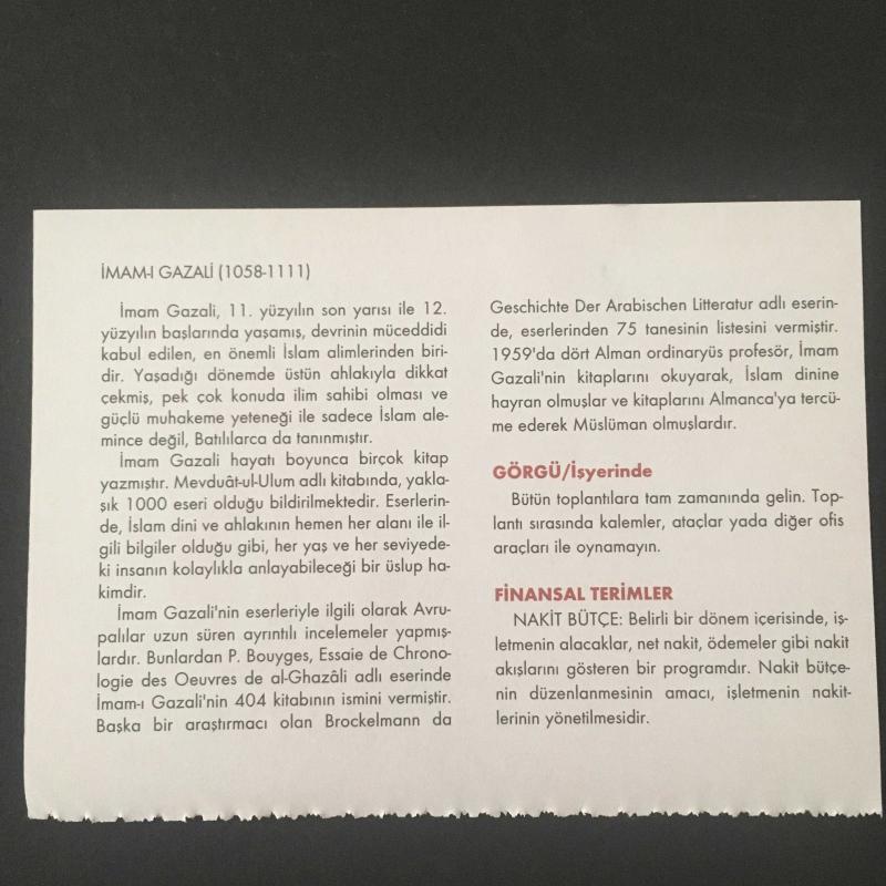 18 ARALIK 2008 -TAKVİM YAPRAĞI-DOĞUM GÜNÜ HEDİYESİ-KUVEYT TÜRK TAKVİMİ,İMAMI GAZALİ HAZRETLERİNİN VEFATI,1111,GALATA TÜNELİNİN AÇILIŞI 1857,İMAMI GAZALİ 1058-1111,GÖRGÜ,FİNANSAL TERİMLER başlıklı ürün, Efemera, Müzik, Sinema > Belge ve Evraklar > Takvimler kategorisi altında İkinci El olarak satılmaktadır.