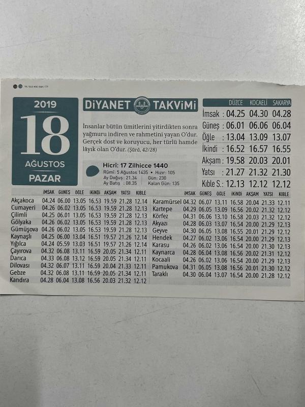 18 Ağustos 2019 Takvim Yaprağı, 7 ay önce satışa sunulmuştur.