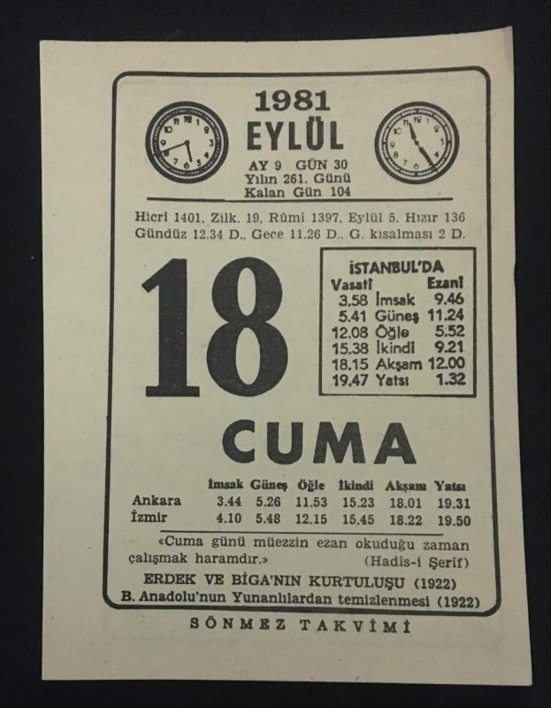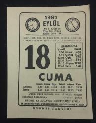 18 EYLÜL 1981 CUMA Sönmez Takvimi YAPRAĞI, en son 2 ay önce güncellenmiştir.