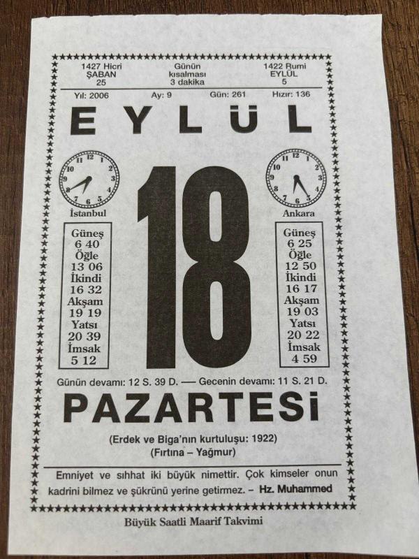 18 EYLÜL 2006 - TAKVİM YAPRAĞI - DOĞUM GÜNÜ HEDİYESİ - BÜYÜK SAATLİ MAARİF TAKVİMİ - HZ.MUHAMMED - DR.ERDOĞAN TANALTAY - İLHAN SELÇUK - BÜYÜK MOSKOVA YANGINI, en son 8 ay önce güncellenmiştir.