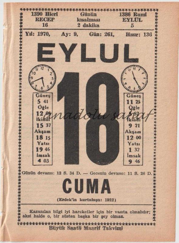 18 Eylül 1970 / Büyük Saatli Maarif Takvimi