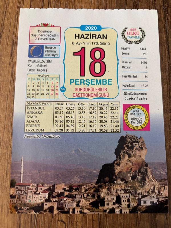 18 HAZİRAN 2020 - TAKVİM YAPRAĞI - DOĞUM GÜNÜ HEDİYESİ - BÜYÜK SAATLİ MAARİF TAKVİMİ - Nevşehir, Ortahisar - HOCA AHMET YESEVİ TÜRBESİ - TARIMSAL DEĞERLERİMİZ - EN BÜYÜK ATAŞ - MOLIERE - 1920 - Ereğli (Zonguldak), Fransız işgalinden kurtuldu - 1928- Havacı Amelia Earhart 17 Haziran 1928'de bindiği bir uçak ile Atlantik Okyanusu'nu geçen ilk kadın yolcu oldu başlıklı ürün, Efemera, Müzik, Sinema > Belge ve Evraklar > Takvimler kategorisi altında İkinci El olarak satılmaktadır.