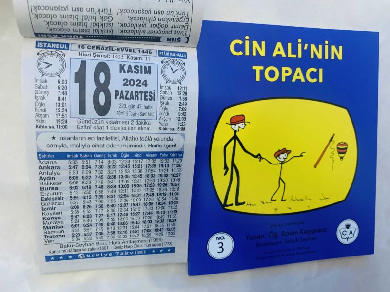 18 Kasım 2024 hediyelik orijinal Türkiye takvim yaprağı (Cin Ali kitabı hediyeli:), en son 7 ay önce güncellenmiştir.