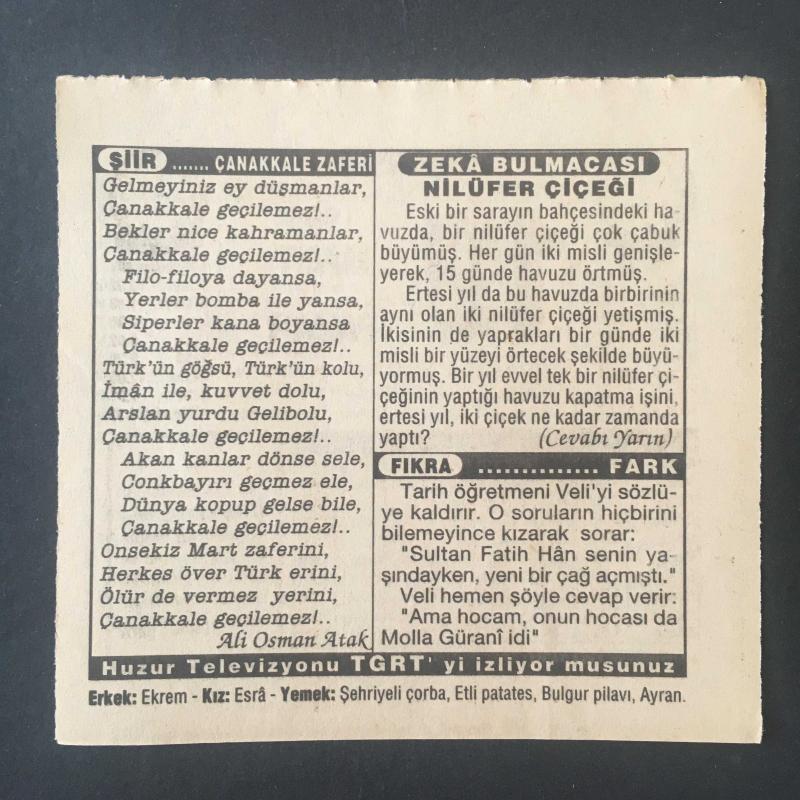 18 MART 1995 -TAKVİM YAPRAĞI-DOĞUM GÜNÜ HEDİYESİ-TÜRKİYE GAZETESİ TAKVİMİ,ÇANAKKAE ZAFERİ,1915,OSMANLI MECLİSİ MEBUSANIN İSTANBULDA SON TOPLANTISI 1920,NİLÜFER ÇİÇEĞİ, en son 8 ay önce güncellenmiştir.